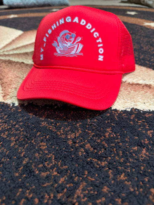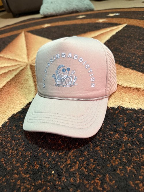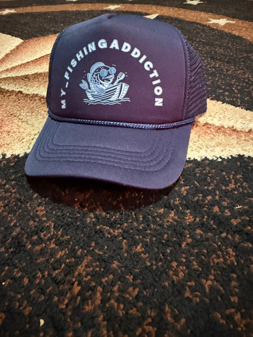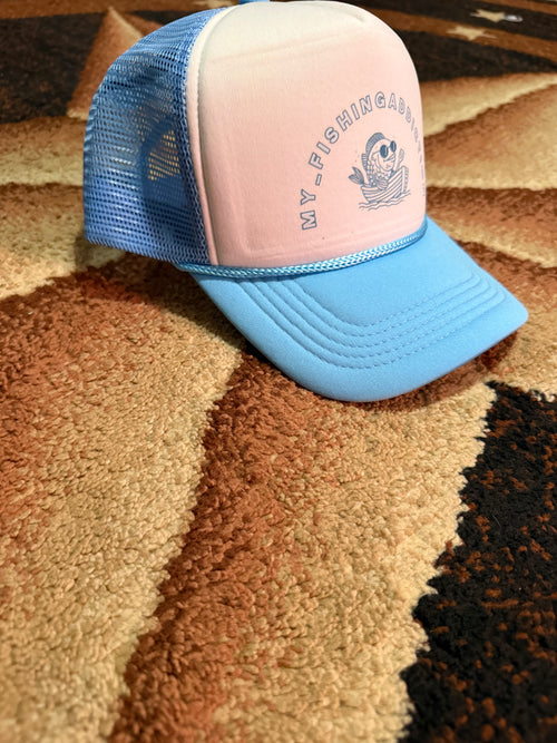 A classic blue trucker hat inspired by bold outdoor style. Breathable mesh backing and a curved bill keep you cool and protected during long fishing trips.